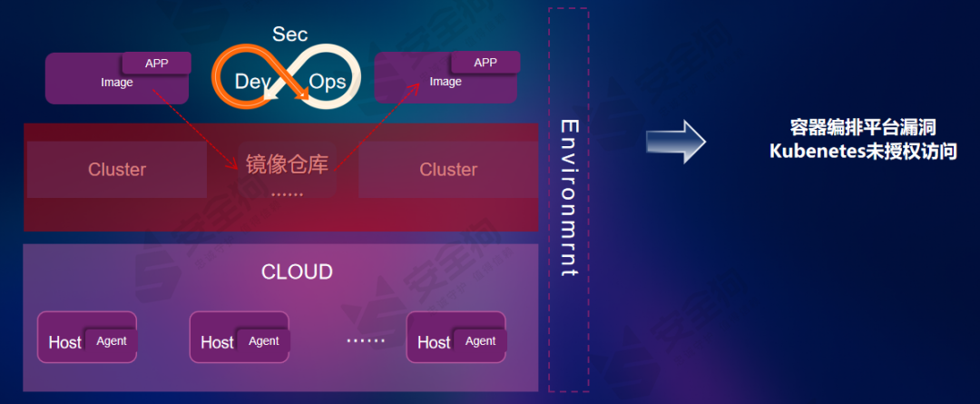 Environment层级对应于制品环境,包括镜像仓库、代码库以及持续集成持续交付环境等资产,涉及了编码和配置中的安全漏洞。