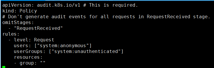 从防守方视角来看,可通过K8S的日志审计功能,发现K8S未授权访问漏洞的利用,如图23所示。该审计策略配置意为:审计等级为“Request”,请求用户为“Anonymous”并且用户组为“Unauthenticated”。