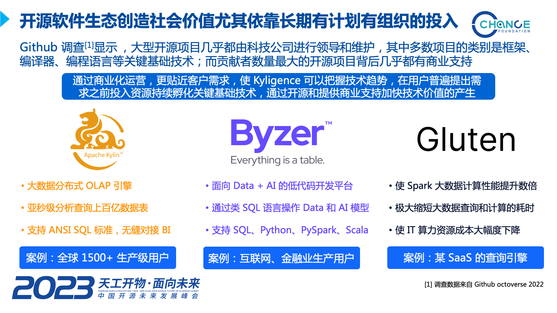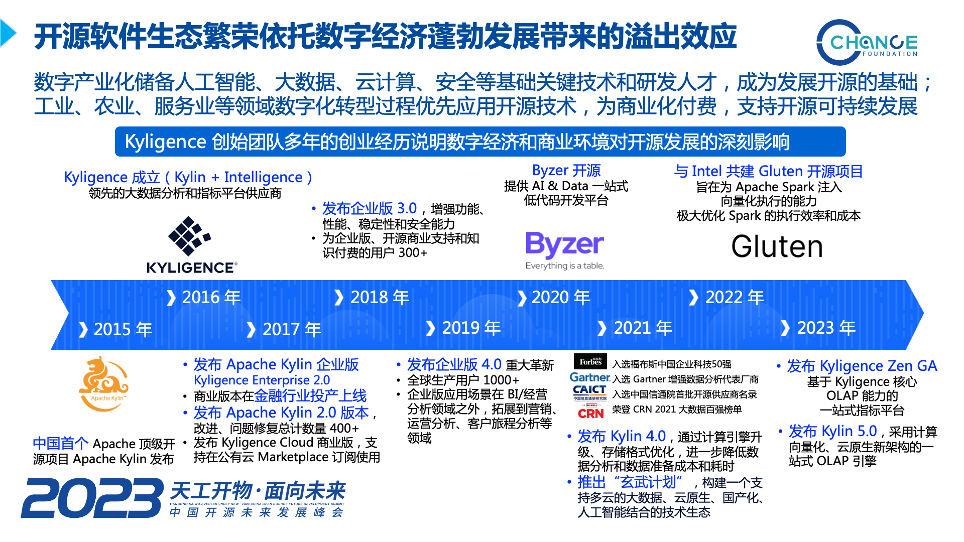 Apache Kylin 和 Kyligence 发展较为成熟,不过这也仅仅是无数开源和开源商业化力量之一,开源和其背后的商业化是驱动各领域数字化变革的重要力量,大力发展这些力量有十分重大的意义和价值。