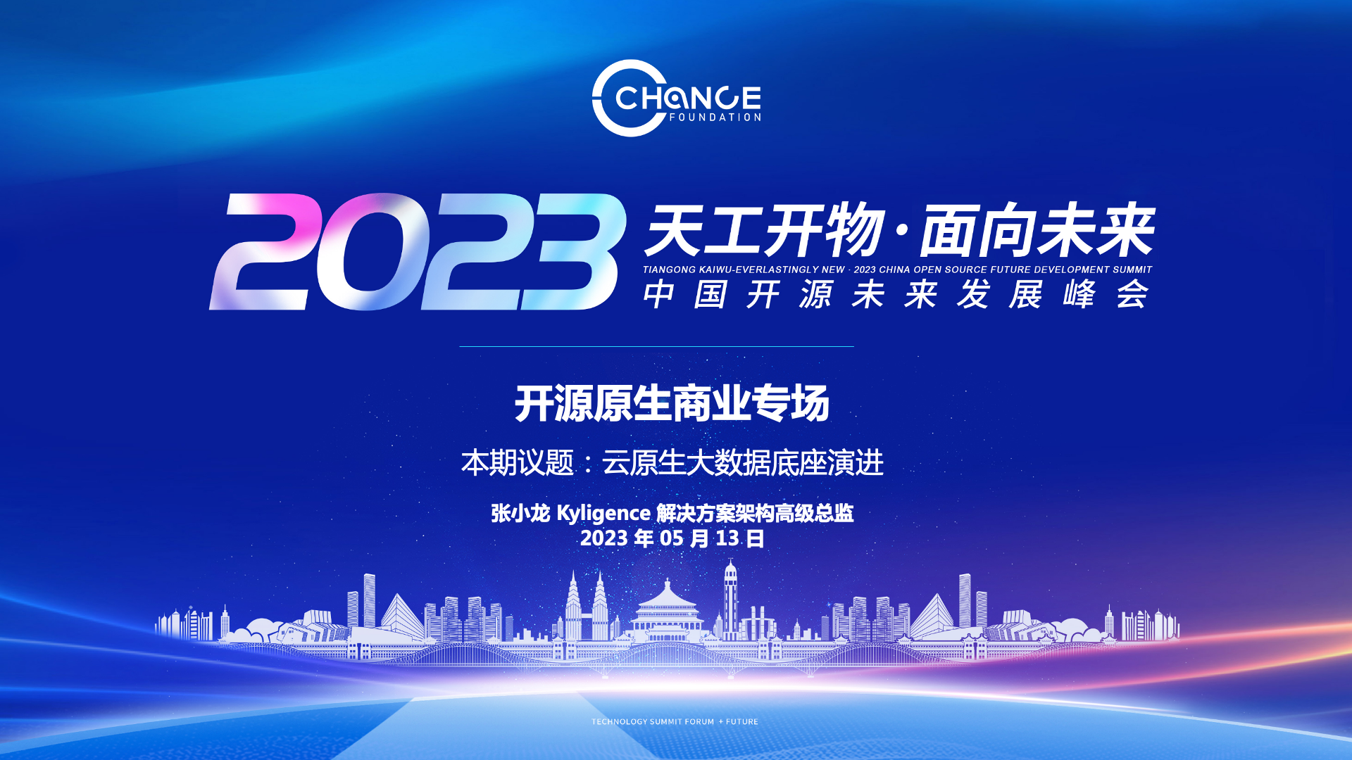 2023 中国开源未来发展峰会于 5 月 13 日成功举办。在大会开源原生商业分论坛,Kyligence 解决方案架构高级总监张小龙发表《云原生大数据底座演进 》主题演讲,向与会嘉宾介绍了他对开源发展的见解,数据底座向云原生湖仓一体架构演进的趋势,以及 Kyligence 湖仓引擎能够在构建下一代云原生数据底座发挥重要价值,通过提升计算性能,大幅度降低计算成本,以下是演讲内容:
