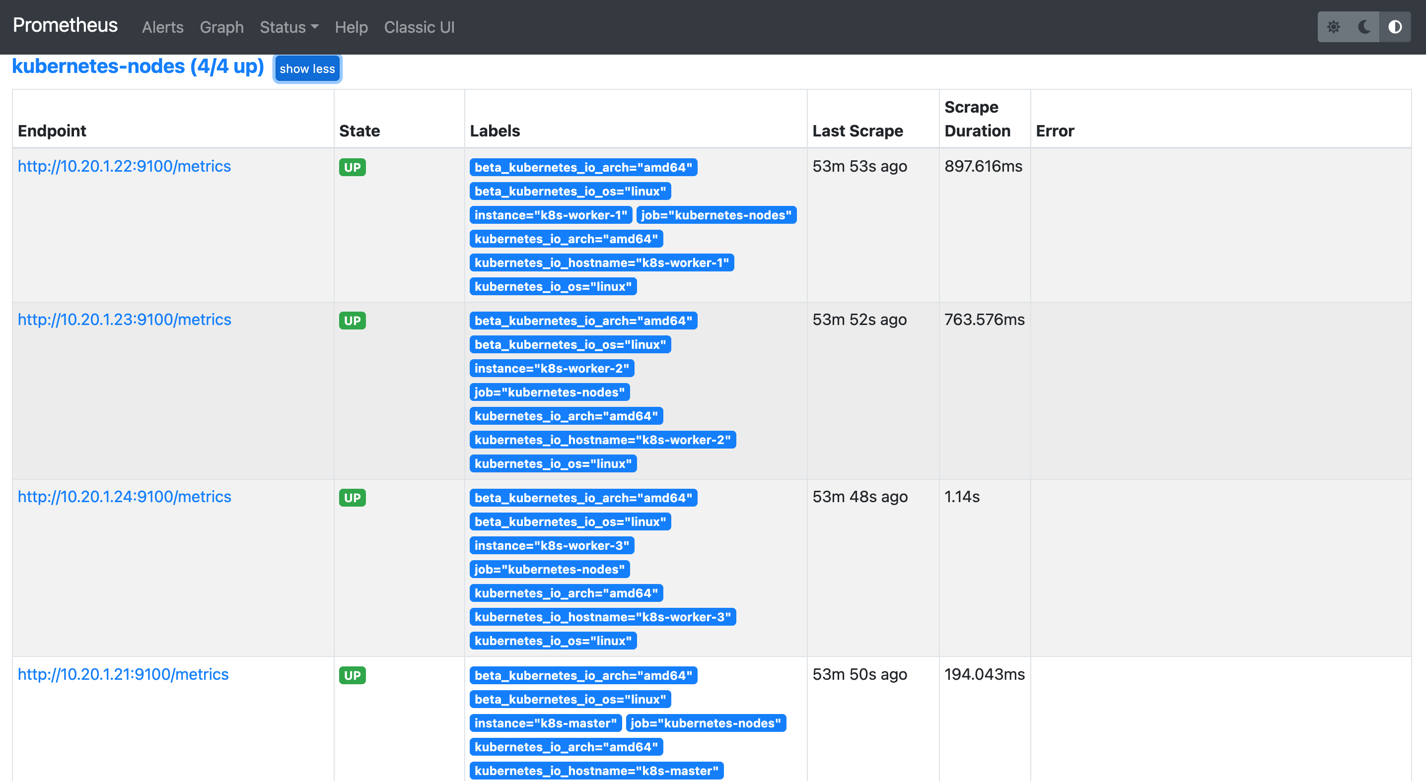 假设K8S集群有4个节点,分别是:k8s-master(10.20.1.21)、k8s-worker-1(10.20.1.22)、k8s-worker-2(10.20.1.23)、k8s-worker-3(10.20.1.24)。