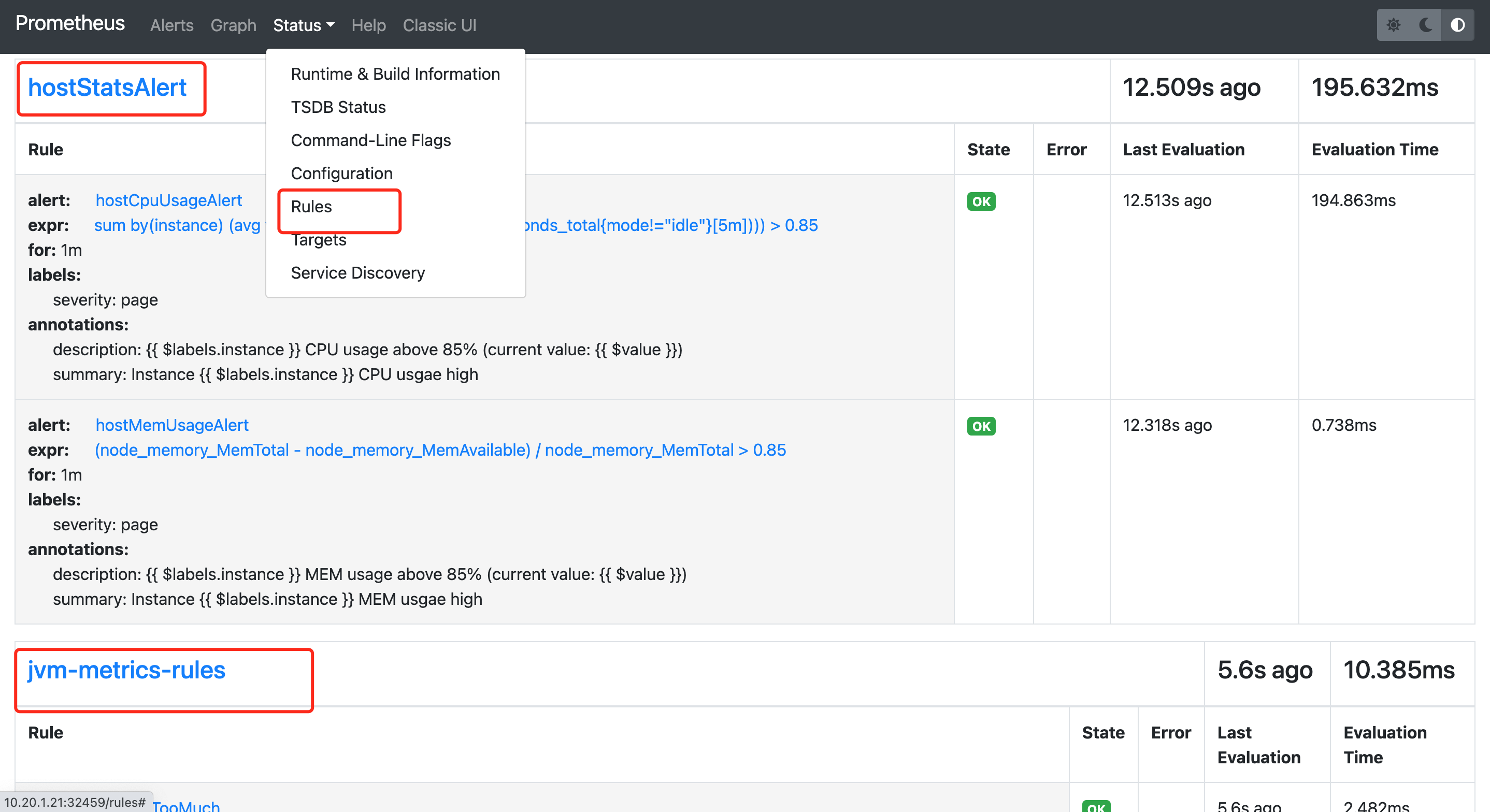 - 告警文件准备好之后,先重启alertmanager,再重启prometheus: