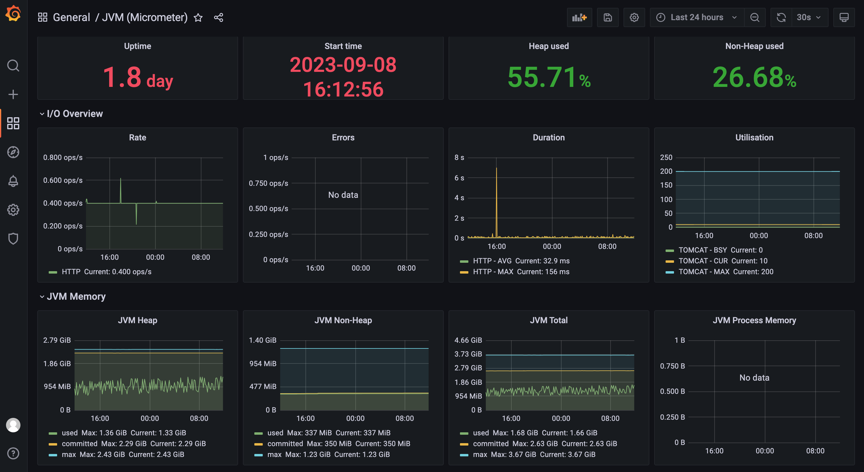 expr: jvm_memory_bytes_used{job="spring-actuator-many", area="nonheap"} / jvm_memory_bytes_max * 100 > 80