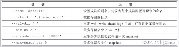 其中,snap目录下将定期记录节点的状态快照信息,wal目录下则记录数据库的操作日志信息(可以通过--wal-dir参数来指定存放到特定目录)。