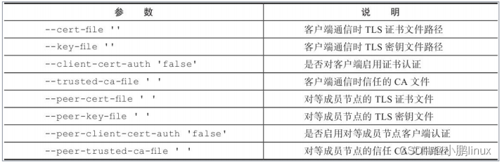 这些参数主要用于指定通信时候的TLS证书、密钥配置,如下: |
