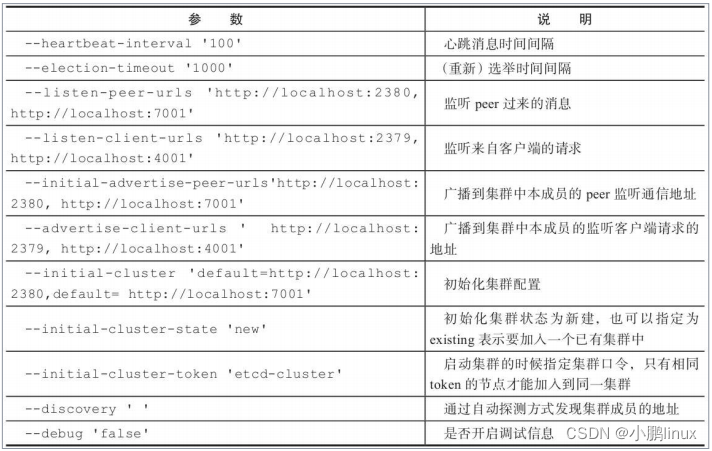 Etcd服务启动的时候支持一些参数,用户可以通过这些参数来调整服务和集群的行为。参数可以通过环境变量形式传入,命名全部为大写,并且加 ETCD_前缀,例如ETCD_NAME='etcd-cluster'。主要参数包括:通用参数、集群参数、安全相关参数、代理参数。