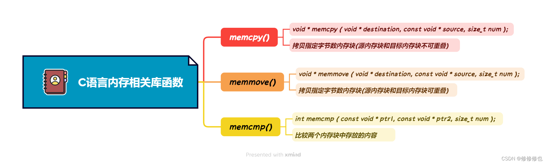 综上,在memcpy()函数部分,我将不再深入去探讨内存块重叠情况的内存拷贝的原理,图示以及模拟实现.而是将这部分的内容转移至对memmove()函数的详解博客中进行探讨.如果有感兴趣的朋友可以移步这篇博客,里面有非常详细的memmove()函数的简介,memmove()函数具体使用方式,memmove()函数实现拷贝重叠内存块逻辑图示以及memmove()库函数的模拟实现等相关内容,详情点击下方链接即可跳转阅读: