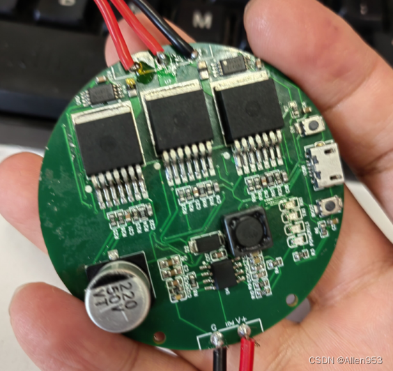 上面集成了as5600磁编码器,电流环等功能。形状为圆形,因此可以非常方便的直接用螺丝固定到电机的后面;同时用的esp32做的主控,所以可以通过wifi进行无线组网,不需要接额外的信号线,只需要给这块板子供上电即可。