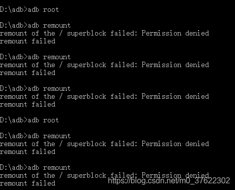 D:\adb>adb remount remount of the / superblock failed: Permission denied remount failed