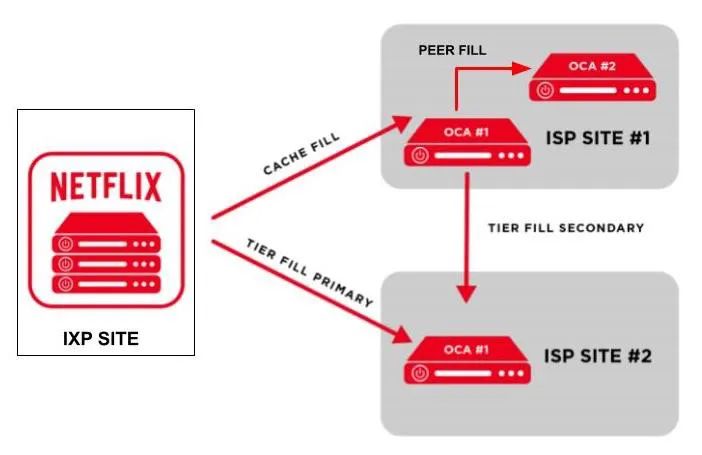 Open Connect CDN是一个名为Open Connect Appliances (OCAs)的服务器网络,用于存储和串流大型视频。这些OCAs服务器分布在位于世界各国的ISP和IXP网络内。OCAs负责将流媒体传输到客户端。