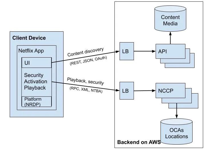 Netflix基于亚马逊云计算服务(AWS)和内部CDN Open Connect(Open Connect)运营([1])。这两个系统必须无缝配合,才能在全球范围内提供高质量的视频流媒体服务。从软件架构上看,Netflix主要由三部分组成。客户端、后台和CDN。