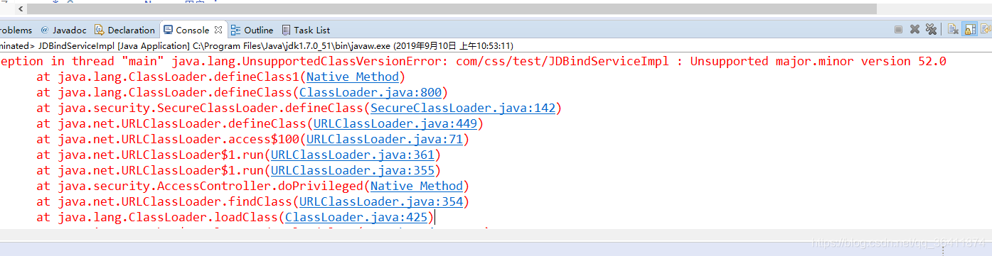 Exception in thread "main" java.lang.UnsupportedClassVersionError: com/css/test/JDBindServiceImpl :