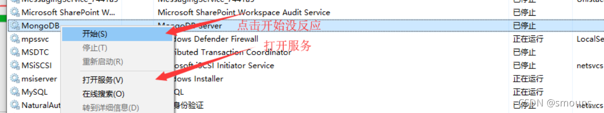 回到任务管理器的服务,右键MongoDB–>开始就可以运行了