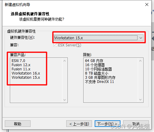 2.兼容性的含义是你所创建此虚拟机适用于什么版本的Vmware,此处不宜选择太高版本。 Vmware的虚拟系统无向下兼容