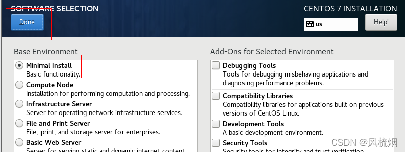 15.设置安装类别 此处我们选择最小安装即可,因为在后面的实验中,多数软件需要我们手动安装