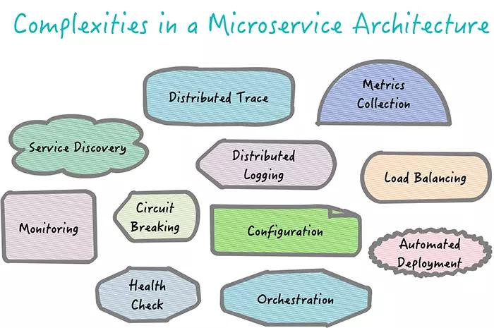 用传统的方式构建一个复杂的、可扩展和有弹性的微服务架构是非常具有挑战性的。我们需要处理服务之间的交互,服务发现、监控、容错性、日志收集和服务熔断等等,服务数量日益增多而且每个服务都需要有这些共同的功能。