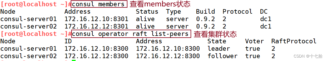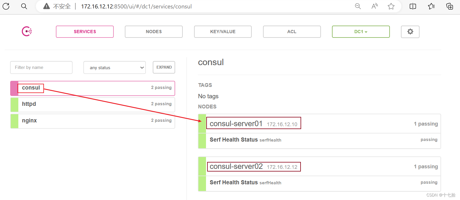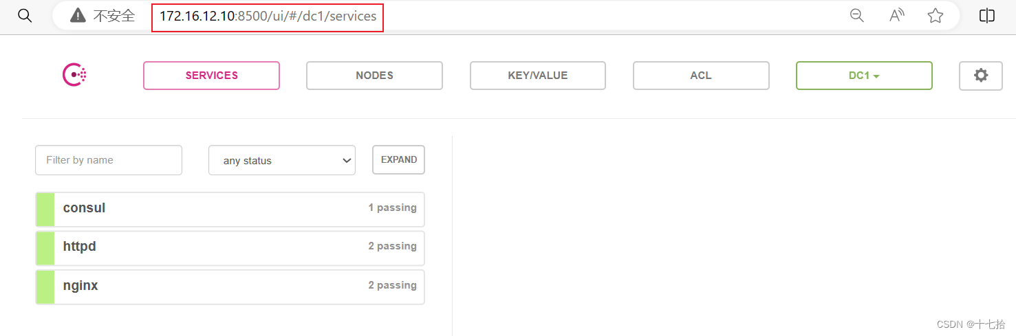 ①浏览器中,输入 http://172.16.12.10:8500 或者 http://172.16.12.12:8500