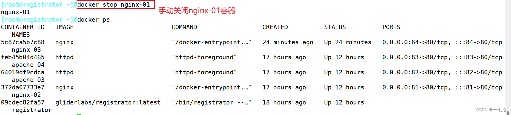 docker stop nginx-01 #关闭nginx-01容器节点