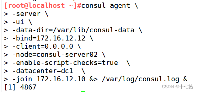 -join 172.16.12.10 &> /var/log/consul.log &