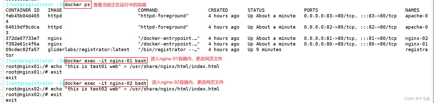 docker exec -it nginx-01 bash #进入nginx-01容器内,更改网页文件