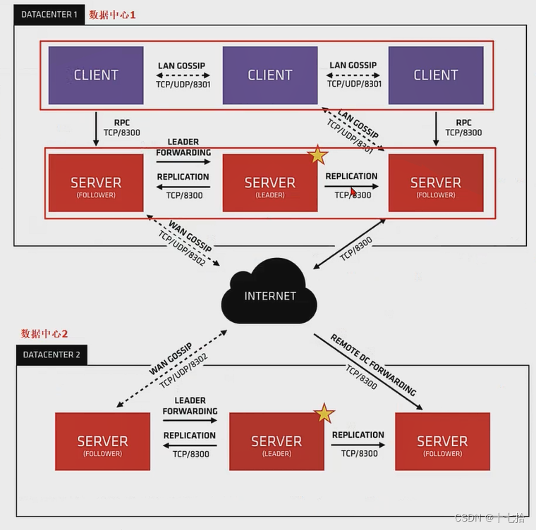 8300:用于内部集群通信的RPC服务端口。这是Consul代理之间进行Raft协议通信所使用的端口。Raft协议用于保证Consul集群中数据的一致性和可靠性