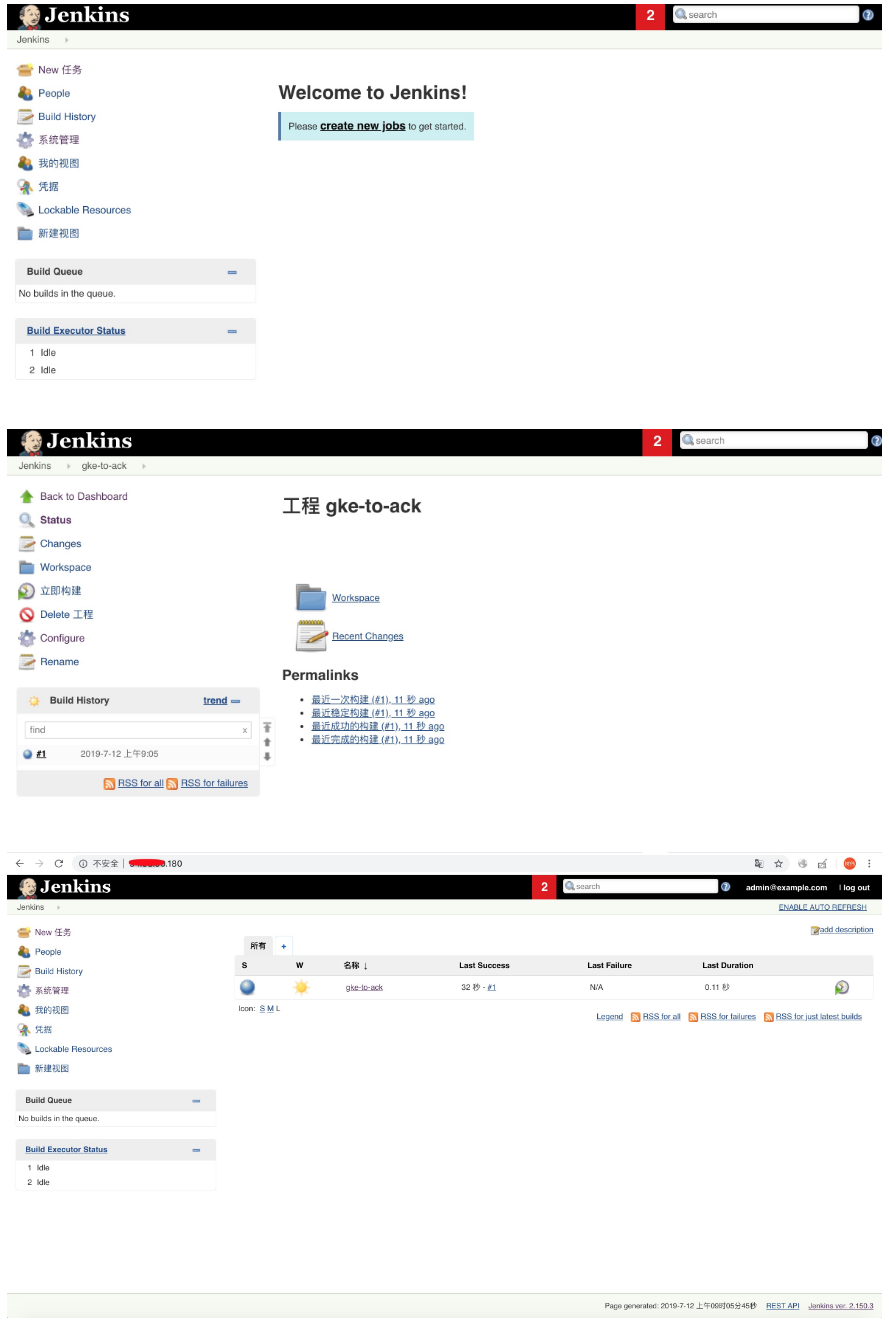 (5)Jenkin应用上创建一个名为gke-to-ack的任务并执行构建: