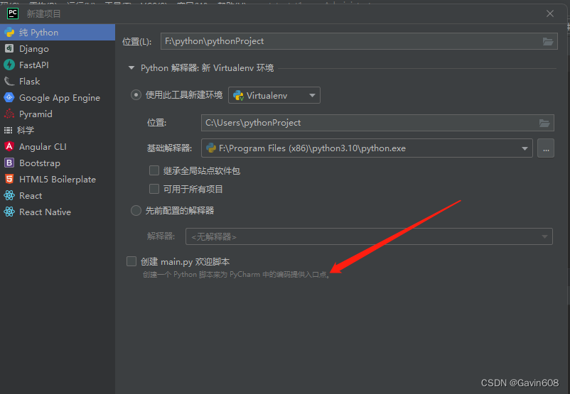 创建新项目后无意中总是选择这个脚本。按运行总是执行main.py。特别烦,所以索性不要选择这个就OK了。