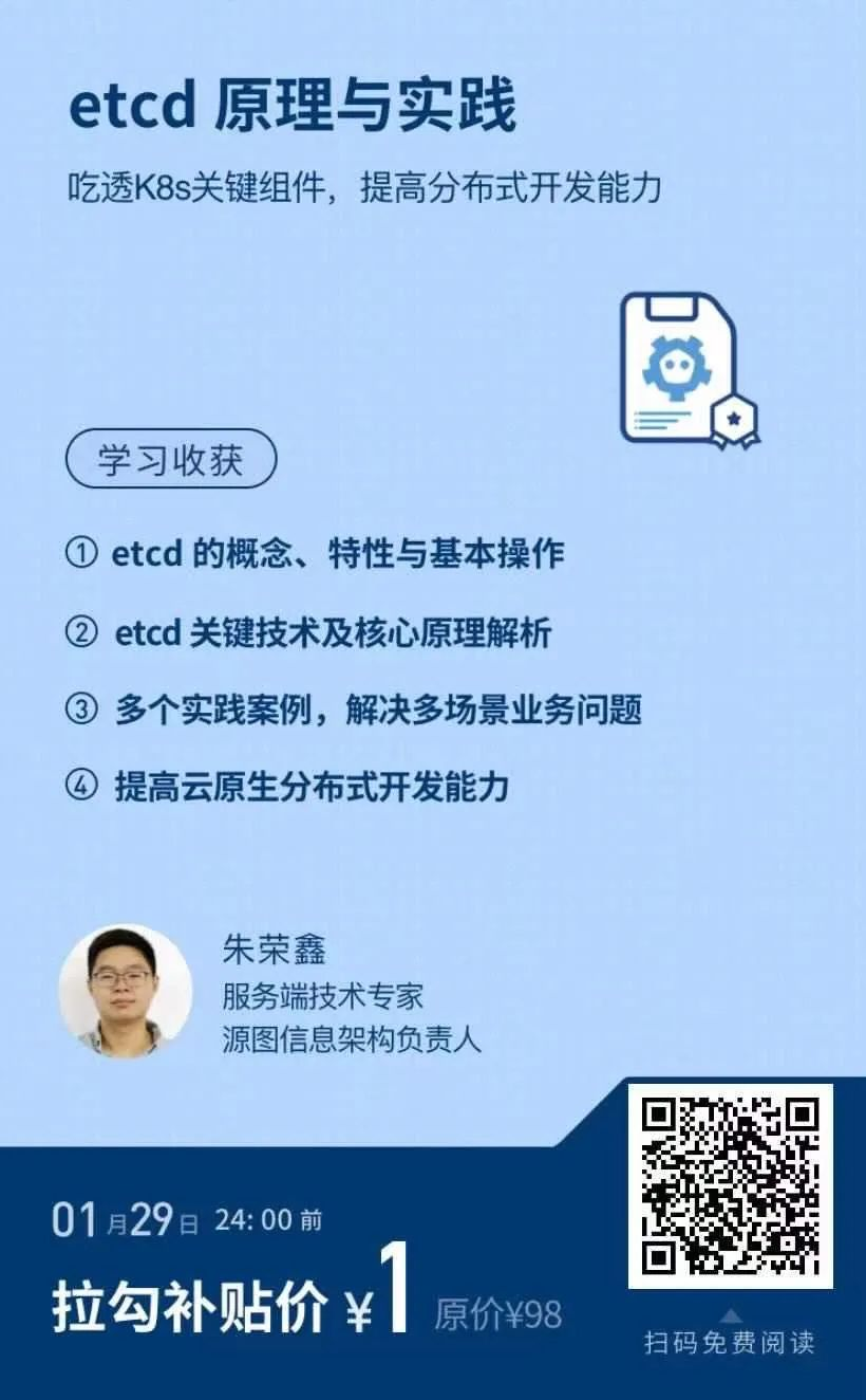 此篇文章作者新出的ETCD专栏,非常不错。已经学习了两讲内容,很接地气。推荐给大家????