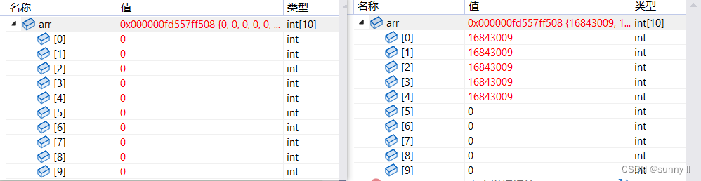 #include<stdio.h> #include<string.h> int main() { int arr[10] = { 0 }; int i = 0; for (i = 0; i < 10; i++) { memset(&arr[i], 1, 1); } return 0; }图解: