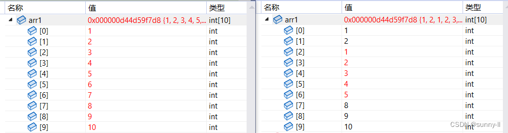 #include<stdio.h> #include<string.h> int main() { int arr1[10] = { 1,2,3,4,5,6,7,8,9,10 }; memcpy(arr1 + 2, arr1, 20); // 拷贝5个字符过去,从数组的下标3开始 return 0; }图解: