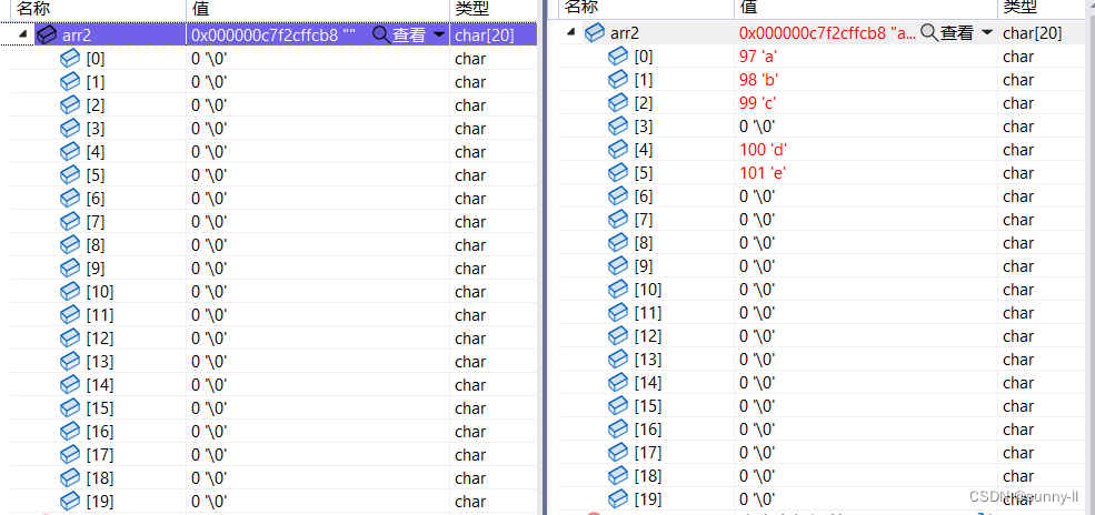 #include<stdio.h> #include<string.h> int main() { char arr1[] = "abc\0def"; char arr2[20] = { 0 }; memcpy(arr2, arr1, 6); printf("%s\n", arr2); return 0; }进行图解演示: