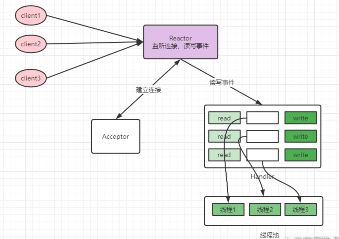 读写事件触发时,交由handler处理;