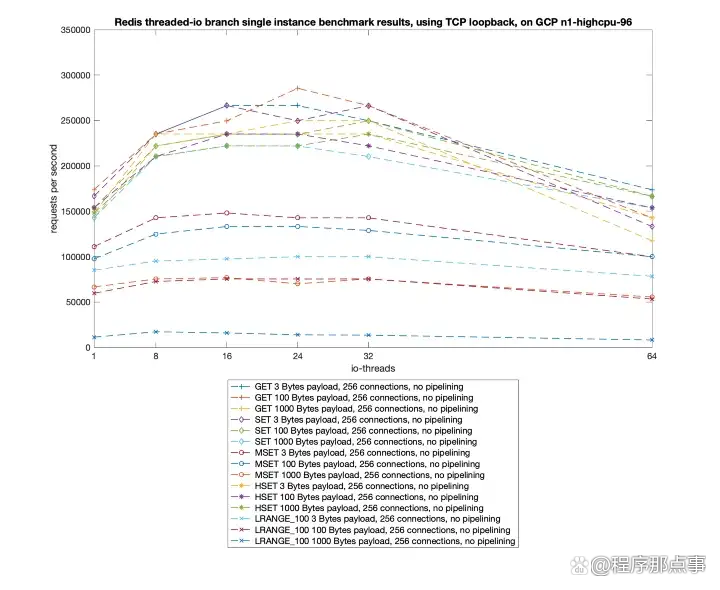 开启多线程后多redis进行压测结果可以参考这里,如下图可以看到,对于简单命令qps可以达到20w左右,相比单线程有一倍的提升,性能提升效果明显,对于生产环境如果大家使用了新版本的redis,现在7.0也出来了,建议开启多线程。