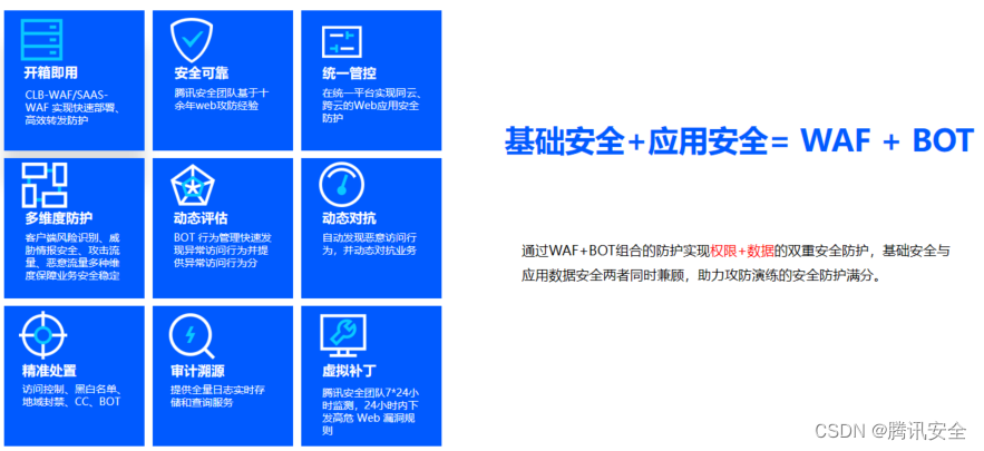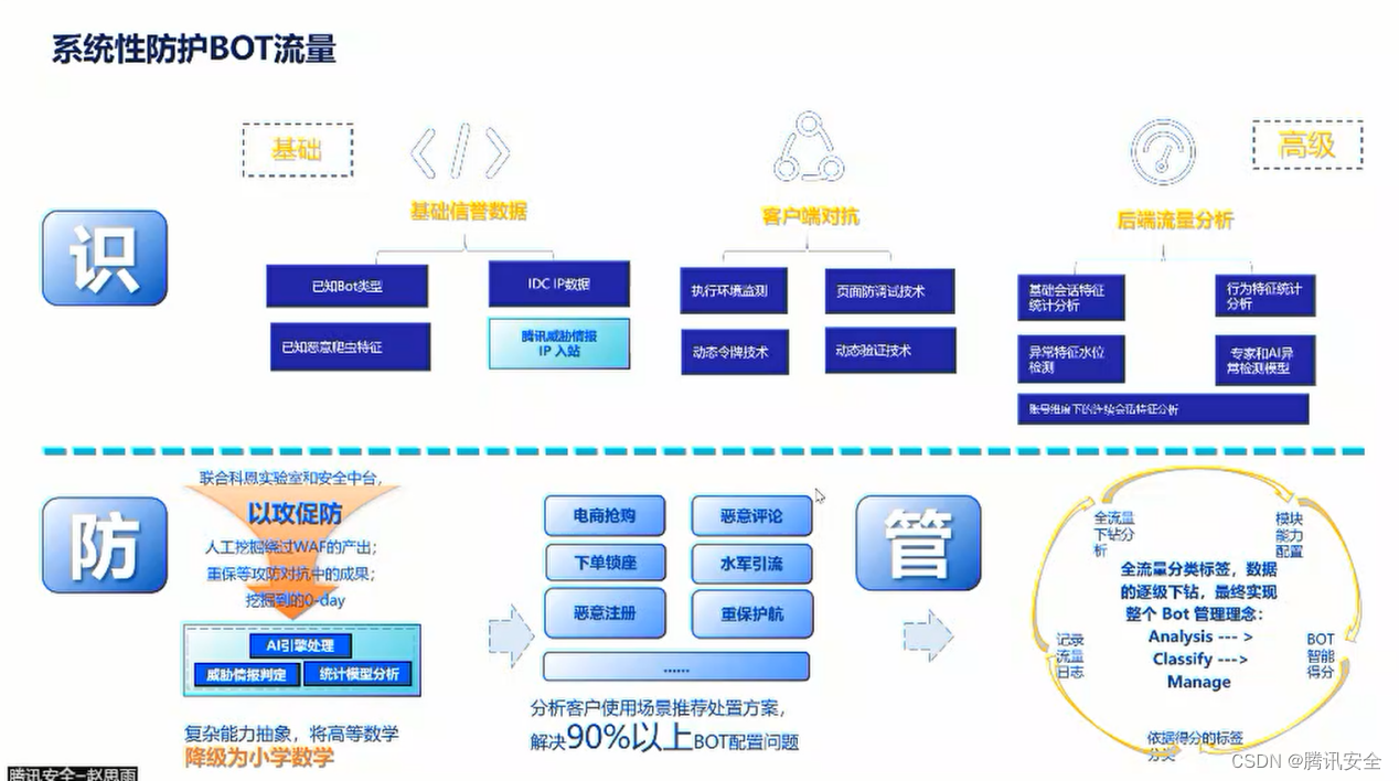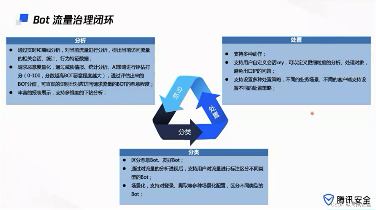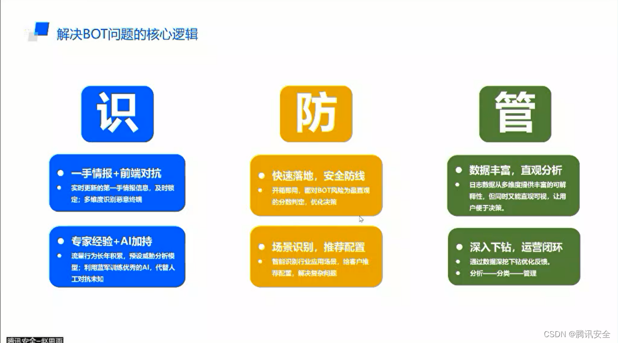 腾讯云WAF在解决BOT问题的核心逻辑就是做到:识别、防护和管控的协调统一。