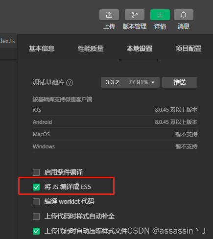 或者project.config.json工具配置代码里面找到 es6值改成true