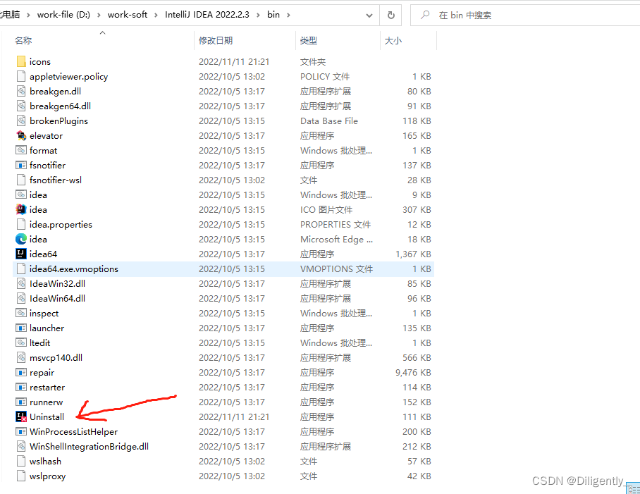 1.找到idea的安装位置:2.进入安装位置的bin位置:选项1:删除缓存和历史记录选项2:删除设置和已经安装的依赖,根据自己的需要来进行删除。等待卸载完成后删除电脑中的注册表相关信息。 3.删除注册表信息:按住win键+r 输入regedit找到下面的位置:计算机\HKEY_CURRENT_USER\SOFTWARE\JavaSoft\Prefs\jetbrains 删除jetbrains 下面