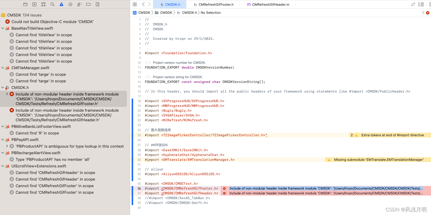 Include of non-modular header inside framework module 'CMSDK': '/Users/hivpn/Documents/CMSDK/CMSDK/CMSDK/Tests/Refresh/CMRefreshGifFooter.h'