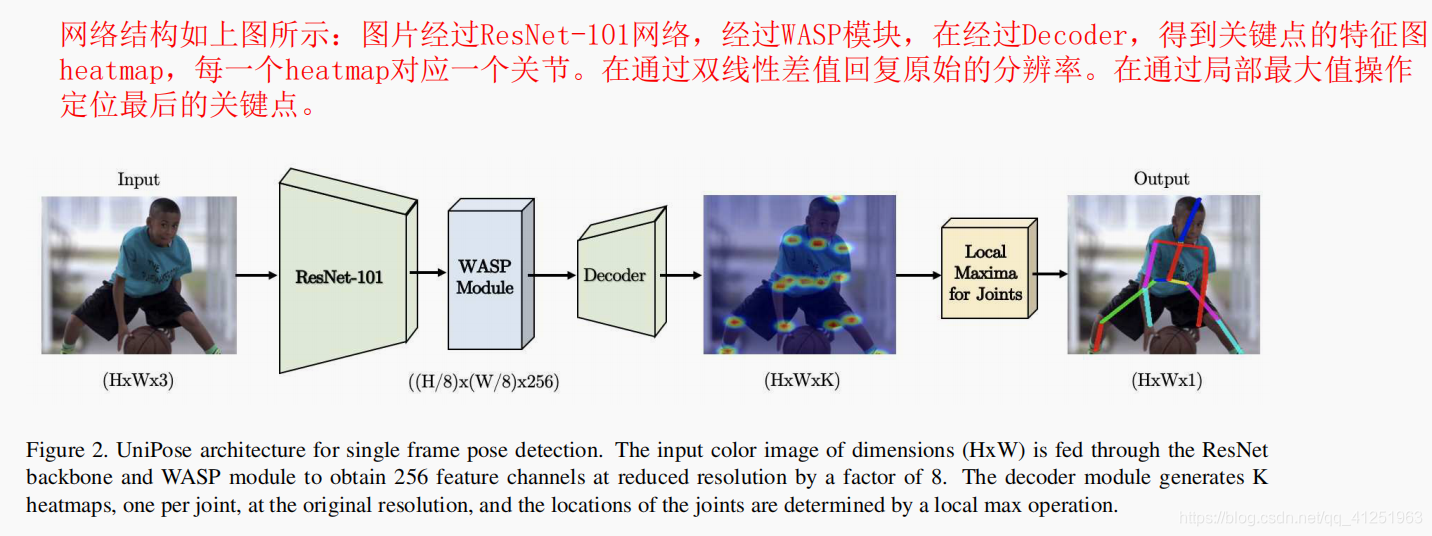 UniPose架构利用“Waterfall”结构中空洞卷积与卷积级联相结合生成的大FOV。 WASP模块在缩小的网络规模中提供了多尺度的特征表示以及较高的效率。 作为对以前工作的改进,Uni-Pose不需要单独的分支来进行边界框和关节检测。 相反,它对人体及其关节的边界框执行统一检测。