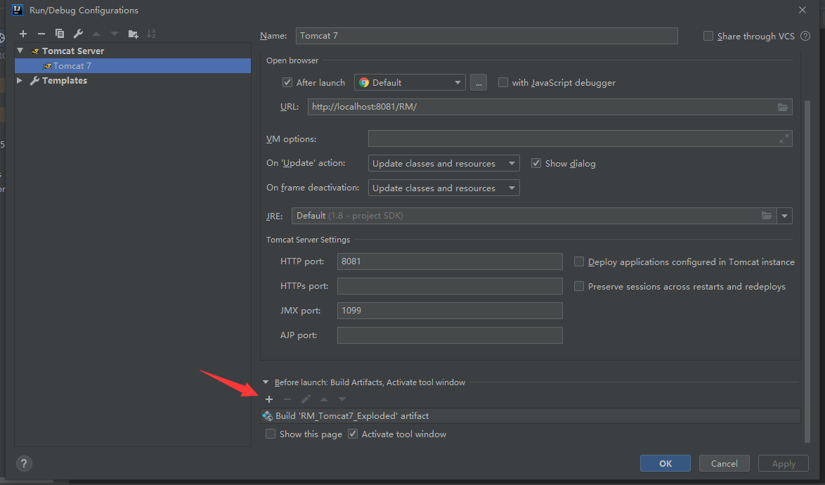 演示案例为 tomcat,如果是运行的某个方法的话,设置这个方法的配置即可。