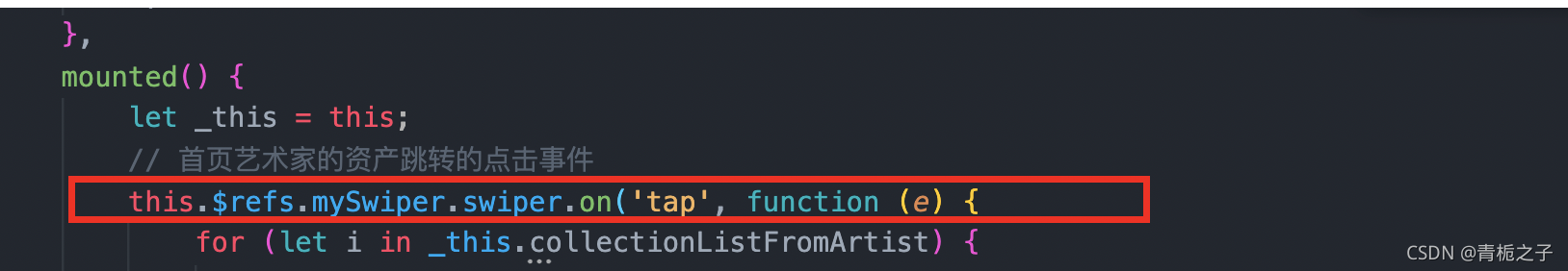 由于是vue项目,所以我使用的是VueAwesomeSwiper,但是我为每个swiper-slide绑定vue的@click事件的时候,点击事件是不会触发的解决办法:使用swiper自带的api如图使用tap,或者click都行,在这里面写你的为每个swiper-slide绑定的点击事件的逻辑就好了...
