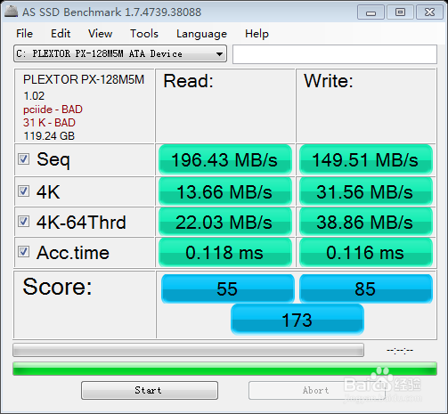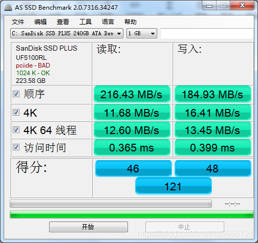 使用AS SSD Benchmark检测后得pciide-BAD