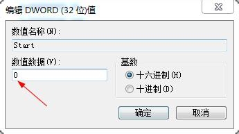 如下图,修改键名为Start的值为0