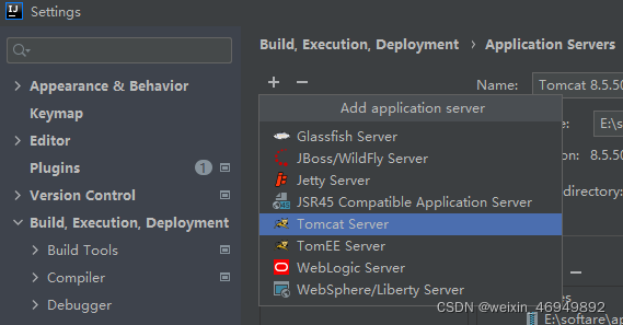 1、File---》Settings---》Application Servers---》+Tomcat Server