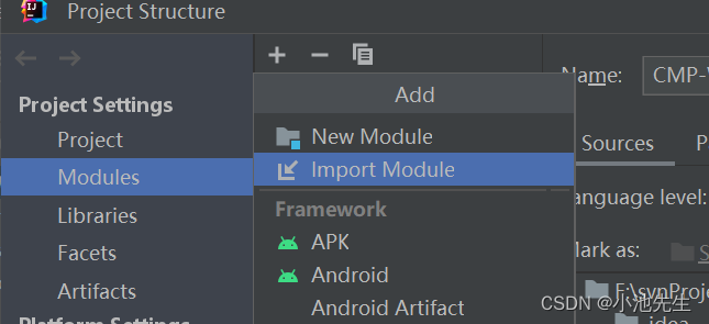 选择import module