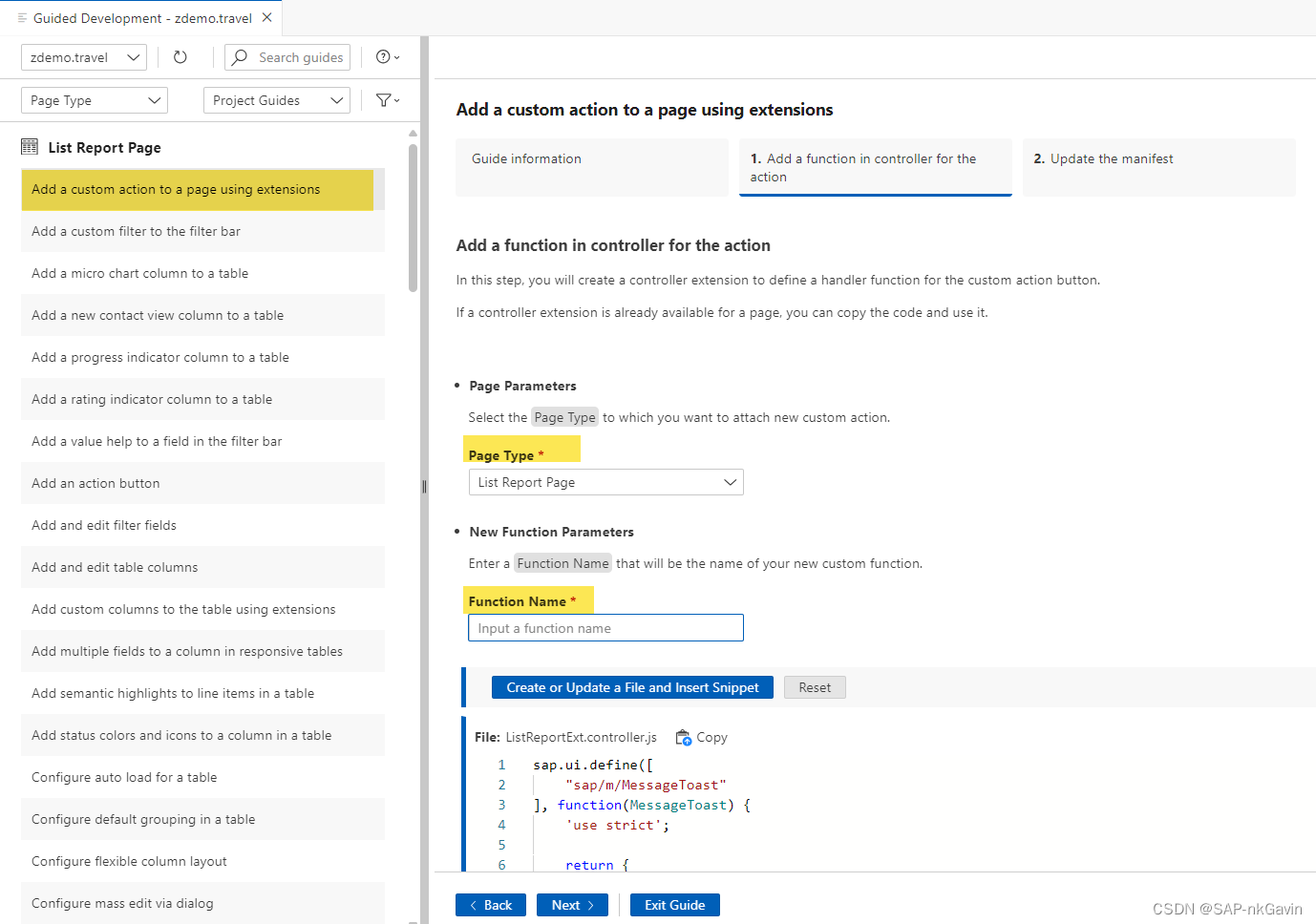 选定功能后,可以直接通过Guided Development一步一步实现选定的扩展功能。