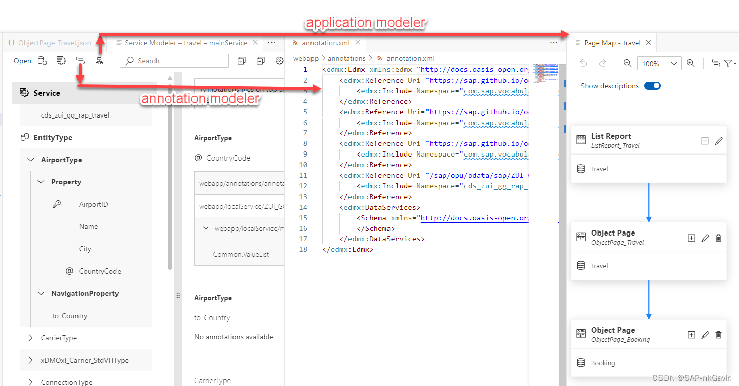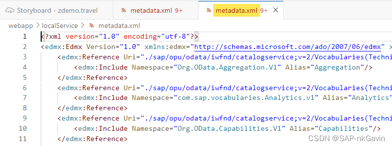 SAP BAS中的服务建模器Service Modeler支持基于.xml /.edmx 文件的OData V2/V4服务模型的可视化。打开Service Modeler的两种方式: