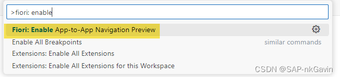 使用命令面板并选择 Fiori: Enable App-to-App Navigation Preview 命令启动此功能