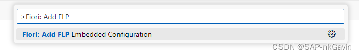SAP BAS为用户提供测试应用程序运行的能力,而无需在外部Fiori Launchpad上重新部署应用程序。打开命令面板, 输入命令Fiori: Add FLP Embedded Configuration: