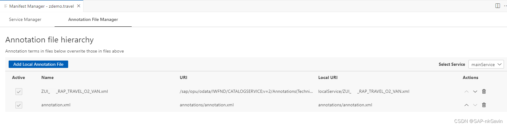 - 管理与SAP Fiori元素项目的不同OData服务相关联的本地注释文件(local annotation)
