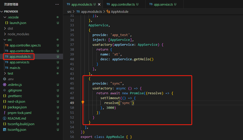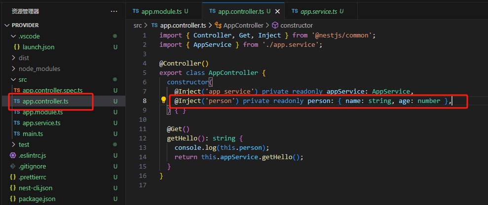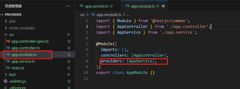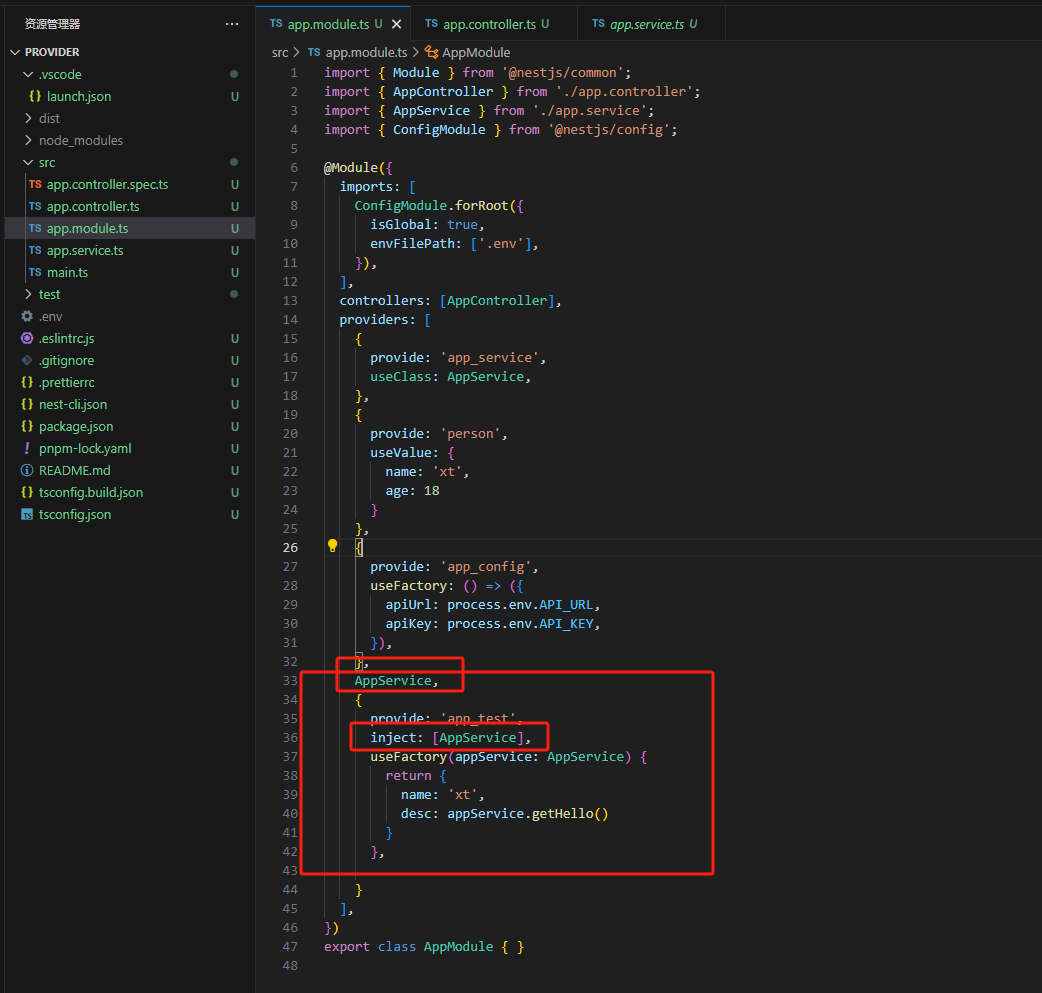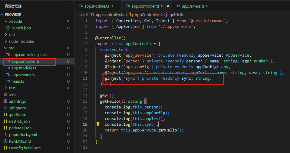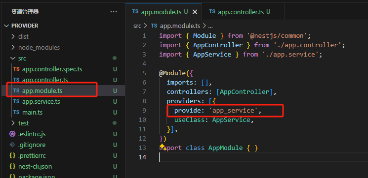 app_test 中要inject: [AppService], 所以我们得先在providers提供 AppService